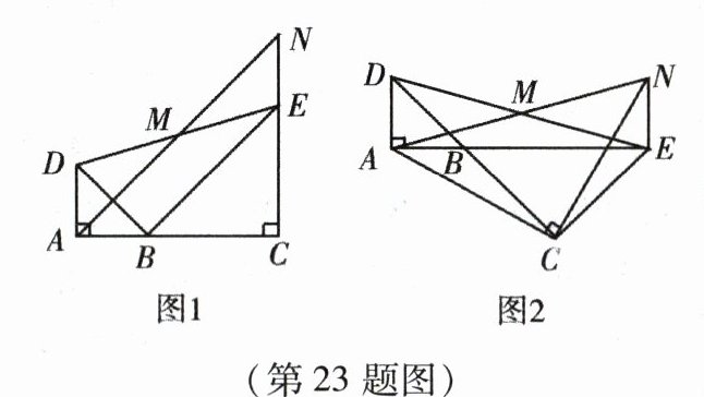 23. (本小题12分)如图,已知$\triangle BAD$和$\triangle BCE$均为等腰直角三角形,$\angle BAD=\angle BCE = 90^{\circ}$,点$M$为$DE$的中点. 过点$E$与$AD$平行的直线交射线$AM$于点$N$.