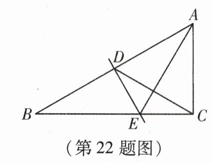 22. (本小题12分)如图,在Rt△ABC中,∠ACB = 90°,∠B = 30°,DE是AB的垂直平分线,交AB、BC于点D、E,连接CD、AE. 求证: