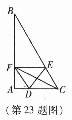 23. (本小题12分)如图,在△ABC中,∠A = 90°,∠B = 30°,AC = 6 cm,点D从点A开始以1 cm/s的速度向点C运动,点E从点C开始以2 cm/s的速度向点B运动,两点同时运动,同时停止,运动的时间为t s,过点E作EF//AC交AB于点F.