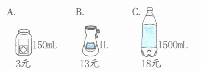 4. 下面是某种饮料的三种不同包装,买( )种较便宜。