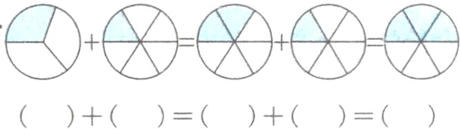 $\frac{1}{4} + \frac{1}{8} = (\ \ ) + (\ \ ) = (\ \ )$