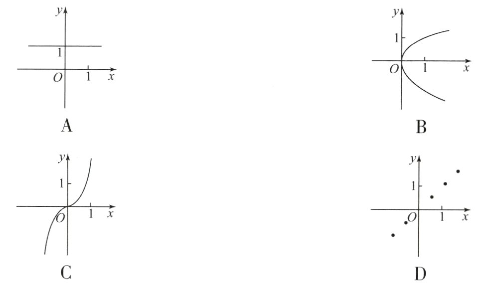 B 解析:B中一个$x$对应两个函数值,不符合函数定义.