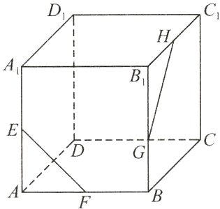 15. 如图,在正方体ABCD - A₁B₁C₁D₁中,E,F,G,H分别为AA₁,AB,BB₁,B₁C₁的中点,则异面直线EF与GH所成的角等于 ( )