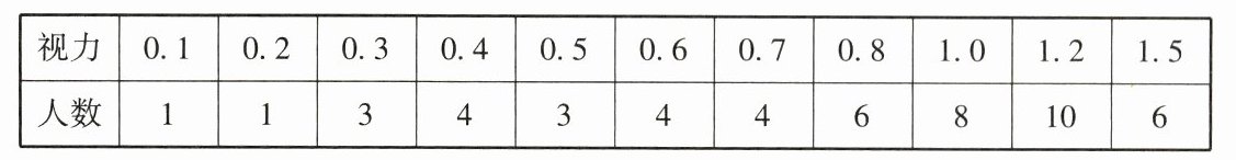 18. 某班50名学生右眼视力的检查结果如下表所示: