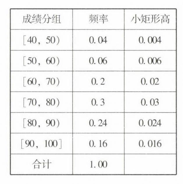 (4)估计成绩在$[70,100]$分的学生所占总体的百分比是$0.3 + 0.24 + 0.16 = 0.7 = 70\%$.
