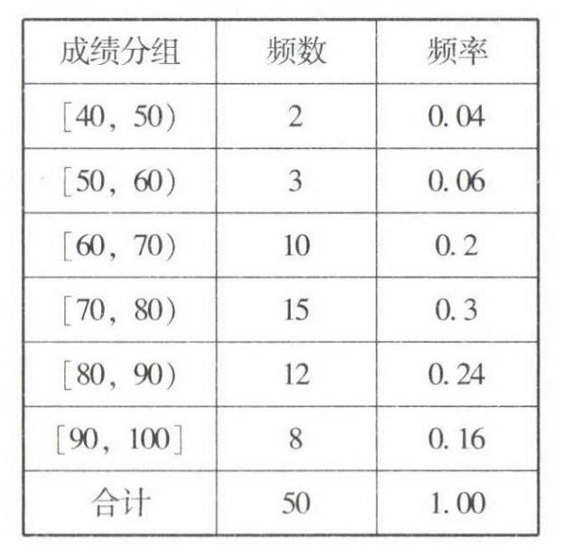 [40,50 ),2;[50,60 ),3;[60,70 ),10;[70,80 ),15;[80,90),12;[90,100],8.