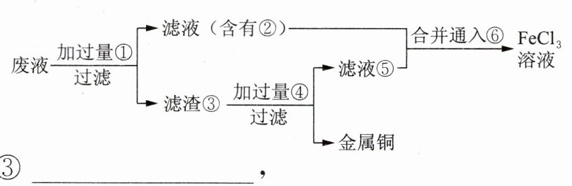 7.某工程师为了从含有FeCl₃、FeCl₂、CuCl₂的腐蚀废液中回收铜,并重新获得FeCl₃溶液,准备采用右图所示实验步骤。