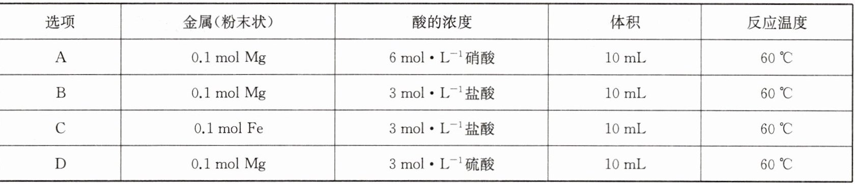 7. 下列各组反应(表中物质均为反应物),反应刚开始时,放出H₂的速率最大的是 ( )