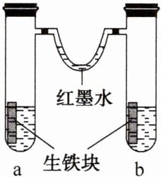12.如右图装置中,U形管内为红墨水,a、b试管内分别盛有食盐水(显中性)