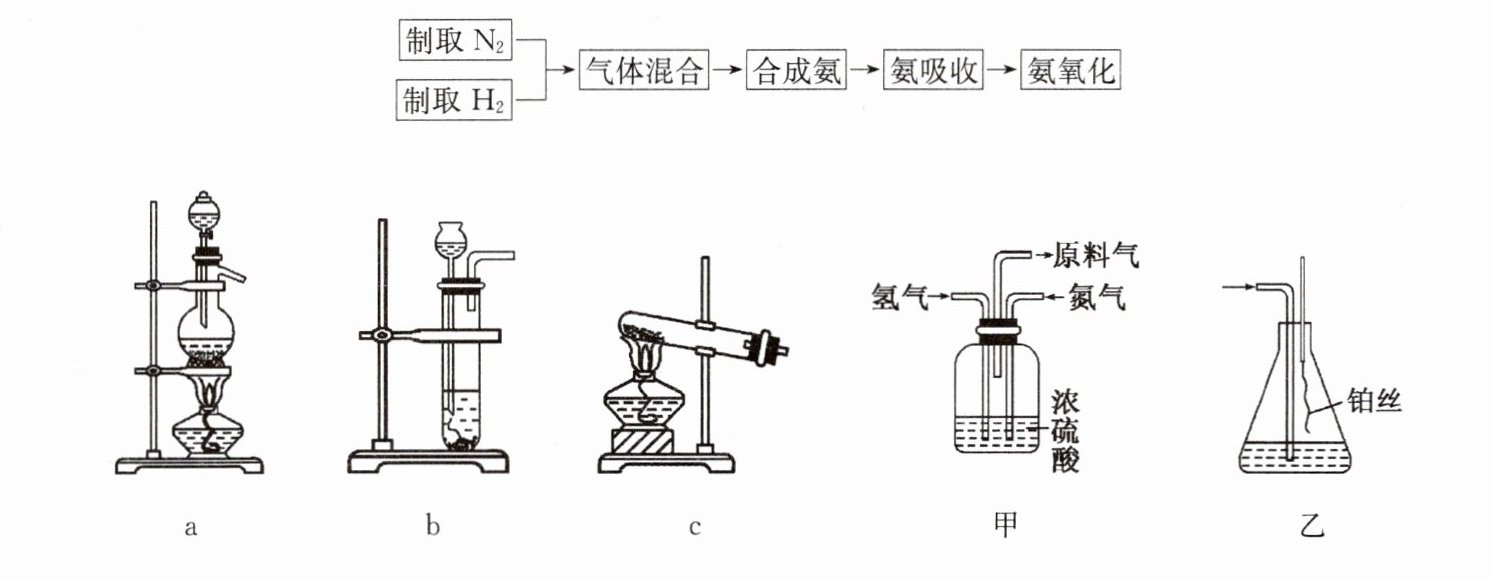 10. 实验室模拟合成氨和氨催化氧化的流程如下: