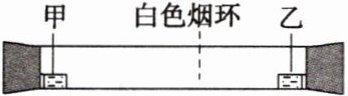 6.已知气体的摩尔质量越小,扩散速度越快。右图为气体扩散速度的 实验,两种气体扩散相遇时形成白色烟环。下列关于甲、乙的判断正确的是