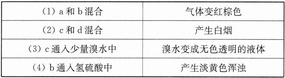 20.有a、b、c、d四种气体,进行下列实验(已知溴单质可被碱性物质吸收),则a、b、c、d依次可能是 ( )