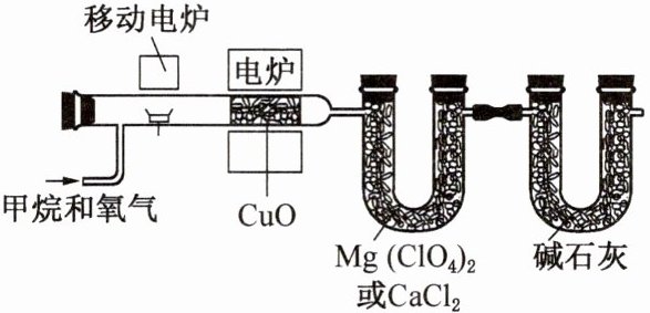 方法点拨 利用上述装置和测定方法,可以确定有机物的分子式。现有标准状况下4.48L甲烷,质量为3.2g,与氧气混合,通入电炉中完全燃烧后,高氯酸镁[Mg(C1O4)2]增重7.2g,碱石灰增重8.8g,定量计算的过程如下: