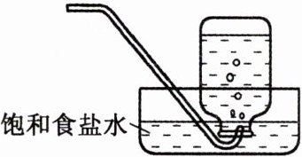 操作:取一个集气瓶,用排饱和食盐水的方法收集$\frac{1}{5}$体积CH4和$\frac{4}{5}$体 积Cl2(见右图),用铁架台固定好,用灯光照射混合气体。