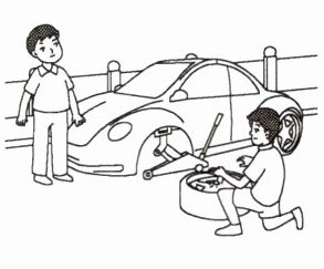 As we drove forward, my brother noticed that a car pulled over to the side of the road. A young man was standing nearby trying to phone someone. I was busy trying to find out which way we went next but my brother pulled over and asked the man if he needed any help. And he did. He had a flat tire(漏气的车胎).