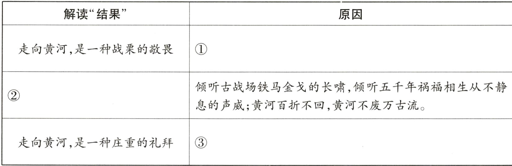 10. 作者从三个方面来“解读”黄河,请按要求补充下面的表格。(6分)