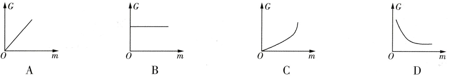 10. 下列各图能表示物体所受重力和质量的关系的是 ( )