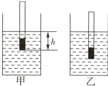 (2)密度计在甲、乙两液体中所受浮力$F_{甲}$______$F_{乙}$,液体密度$\rho_{甲}$______$\rho_{乙}$.(选填“>”“=”或“<”)