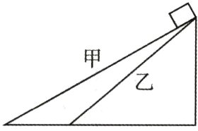 8. 如图所示,小明利用两个倾角不同的斜面进行实验. 若甲、乙斜面的粗糙程度相同,则将同一木块分别从两斜面底端匀速拉至斜面顶端时,对物体做的有用功W甲______W乙,克服阻力所做的额外功W甲______W乙,若甲、乙斜面光滑,则拉力F甲______F乙. 将木块分别从两光滑斜面顶端自由释放,则木块到达斜面底端的速度v甲______v乙(均选填“>”“<”或“=”).