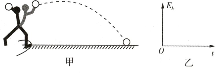 12. 如图甲所示是小明练习投掷铅球掷出后的情景,请在图乙中大致画出铅球从离开手时,到它刚接触水平地面的这段时间内,铅球的动能Ek随时间t变化的大致图像.