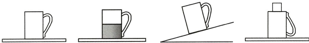 5. 如图所示,下列四个完全相同的水杯都处于静止状态,其中对接触面的压力等于杯子自身重力的是 ( )