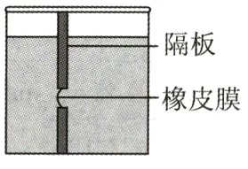 5. 如图所示,容器中间用隔板分成左右两部分,这两部分底面积之比为2:3,隔板下部有一圆孔用薄橡皮膜封闭,圆孔直径可忽略不计. 橡皮膜两侧压强不同时其形状为一凹面. 小明和小红用它来做“探究液体压强跟哪些因素有关”的实验.