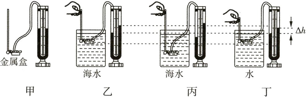 (5)若图丁中U形管两侧水面高度差Δh = 6 cm,则烧杯内金属盒所测位置处液体的压强为________Pa. (g取10 N/kg)