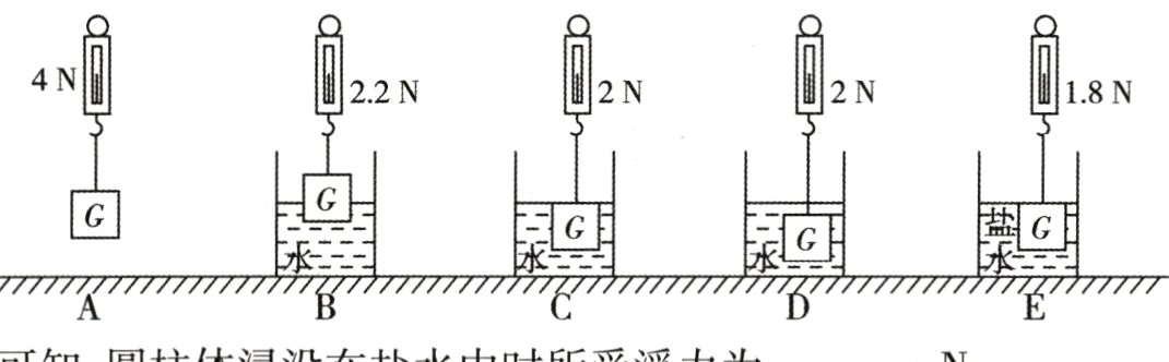 (1)通过如图实验可知:圆柱体浸没在盐水中时所受浮力为________N;