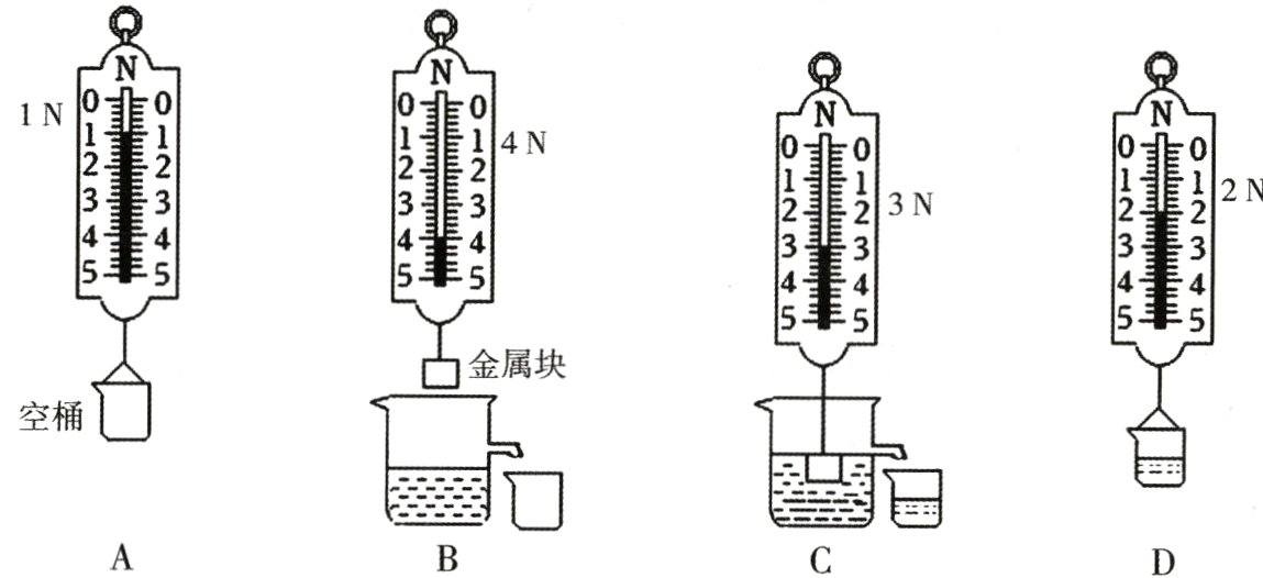 4. 下列是“验证阿基米德原理”的过程情景,请根据图示完成下面的填空.