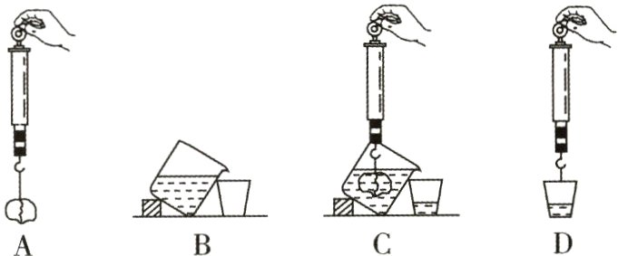 D. 将盛有溢出水的小桶挂在弹簧测力计下,读出此时弹簧测力计的示数;