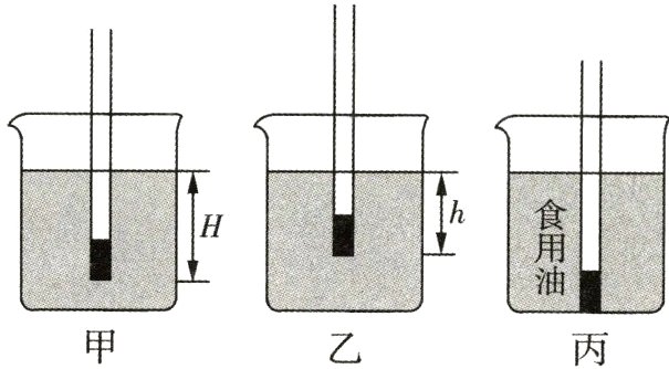 (4)再向容器中加食用油或者将容器换成直径细些的