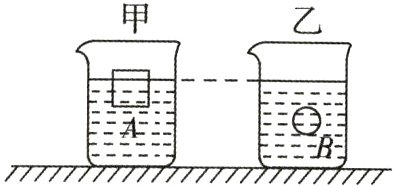 30.(松原月考)如图所示,水平桌面上甲、乙两相同的容器装有体积相等的不同液体。将同种材料制成的实心物体A、B分别放入甲、乙两容器中,静止时两容器中的液面保持相平,则 ( )