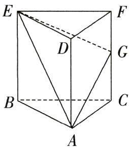 《九章算术·商功》记载了一个古代数学名词“堑堵”.即两底面为直角三角形的直棱柱,即长方体的斜截平分体.如图所示,堑堵(即直三棱柱)ABC - DEF中,AB⊥AC,AB = AC = 2,AD = 4,G是FC的中点.