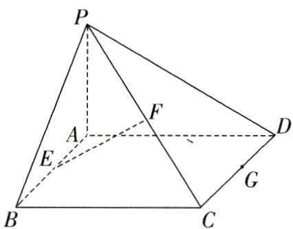 如图,已知矩形ABCD所在平面外一点P,PA⊥平面ABCD,E,F,G分别是AB,PC,CD的中点,PA = AB = AD = 1.