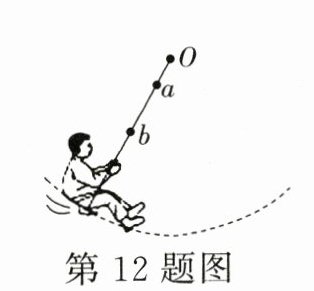 12. 如图所示,小强同学正在荡秋千,关于绳上a点和b点的线速度和角速度,下列关系正确的是 ( )