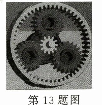13. 科技馆的科普器材中常有如图所示的匀速率的传动装置:在大齿轮盘内嵌有三个等大的小齿轮. 若齿轮的齿很小,大齿轮的半径(内径)是小齿轮半径的3倍,则当大齿轮顺时针匀速转动时,下列说法正确的是 ( )