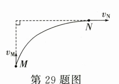 29.如图所示,一质点在重力和水平恒力作用下,速度从竖直方向变为水平方向,在此过程中,质点的 ( )