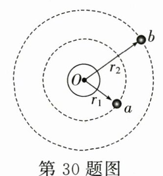 30.有两颗卫星分别用a、b表示,若a、b两颗卫星绕地球做匀速圆周运动的轨道半径之比为4:9,如图所示,则下列说法正确的是( )