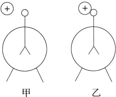 3. 用带正电的小球靠近不带电验电器的金属球,结果验电器的金属箔张开,如图甲所示;用带正电的小球接触不带电验电器的金属球,结果验电器的金属箔张开,如图乙所示. 关于甲、乙两验电器金属箔带电情况. 下列说法正确的是 ( )