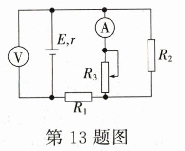 13. 如图所示的电路中,当变阻器R3的滑片向上移动时 ( )
