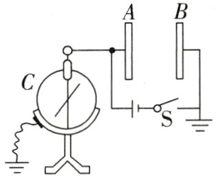 9. 如图所示,电路中A、B为两块竖直放置的金属板,C是一只静电计,开关S合上后,静电计指针张开一个角度,下述做法可使静电计指针张角不变且电容减小的是 ( )