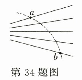 34. 如图中实线是一簇未标明方向的电场线,虚线是某一带电粒子通过该电场区域时的运动轨迹,a、b是轨迹上的两点. 若带电粒子在运动过程中只受静电力的作用,根据此图可做出正确判断的是( )