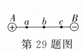 29. 如图A、B为两等量异种点电荷,A带正电,B带负电,在A、B连线上有a、b、c三点,其中b为连线的中点,ab = bc,则以下说法不正确的是( )