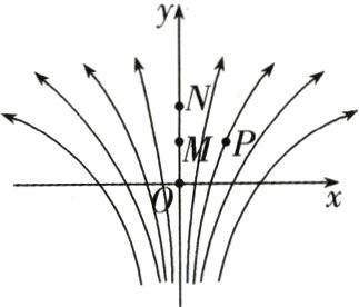 40. 如图所示,一电场的电场线分布关于$y$轴(沿竖直方向)对称,$O、M、N$是$y$轴上的三个点,且$OM = MN$。$P$点在$y$轴右侧,$MP\perp ON$。则下列说法正确的是( )