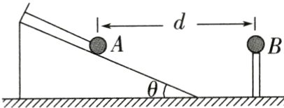 37. 如图所示,水平地面上固定一个光滑绝缘斜面,斜面与水平面的夹角为$\theta$。一根轻质绝缘细线的一端固定在斜面顶端,另一端系有一个带电小球$A$,细线与斜面平行。小球$A$的质量为$m$、电荷量为$q$。小球$A$的右侧固定放置带等量同种电荷的小球$B$,两球心的高度相同、间距为$d$。静电力常量为$k$,重力加速度为$g$,两带电小球可视为点电荷。小球$A$静止在斜面上,则( )
