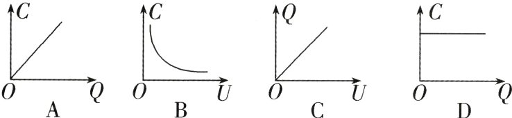 43.CD 电容器的电容是由电容器本身决定的,与电容器所带电荷量Q的大小和两极板间的电势差U的大小无关,不能认为C与Q成正比,与U成反比,故选项D正确,A、B错误;对给定的电容器,其所带电荷量与极板间的电势差成正比,其比值即电容器的电容,故选项C正确.