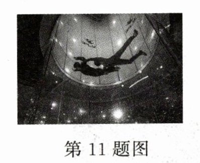 11. 如图所示是我国首次立式风洞跳伞实验,风洞喷出竖直向上的气流将实验者加速向上“托起”. 此过程中 ( )