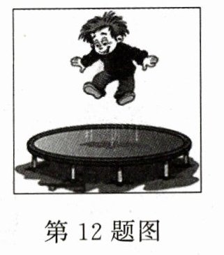 12. 如图所示,小孩在蹦床上沿竖直方向蹦跳,对其从最低点到离开床面的过程,下列说法正确的是 ( )