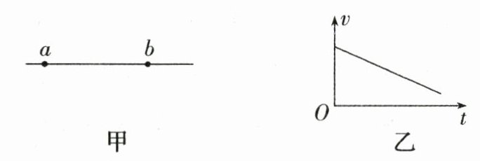 15. D 负电荷从a运动到b,由v - t图像得到负电荷做减速运动,故电场力方向向左,因负电荷受到的电场力方向与场强方向相反,故场强方向向右,沿场强方向,电势降低,故$\varphi_a>\varphi_b$;因为图线的斜率不变,故加速度不变,因此电场力不变,所以电场强度不变,即$E_a = E_b$,D正确.