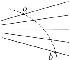 47.如图中实线是一簇未标明方向的电场线,虚线是某一带电粒子通过该电场区域时的运动轨迹,a、b是轨迹上的两点.若带电粒子在运动过程中只受静电力的作用,根据此图可做出正确判断的是 ( )